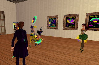 Anyway, my friends and probably half of fishdom know my dad fractured his ankle last month, leaving me and my recently diagnosed heel spur to visit both Mom on Long Island then Dad in a Queens rehab, all via public transportation (I type this right now while waiting for the Long Island Railroad to take me back to Queens, where I'll catch a bus to Flushing) . Very little of my Sundays belong to me for the time being. I would have liked to make a float for New Toulouse's Mardi Gras parade but there was just no time. I did manage to make my place ready for Open House and a really fun placewarming party. I know so many folks over the years since Madhu's, with the added perspective of being back in my birthland (I'm from New Orleans in rl) and enjoying a culture I never got a chance to get acquainted with in my first six years. At least I got a chance to contribute toward it here, with the party and freebie Second Line accoutrements. But being with nice people and enjoying their events and offerings in turn is the best part. As with the best of communities, each has their own backstory but together share a an enthusiasm for the land, and - and this is where other places fail - a welcome hand is offered to any stranger as if they were a next neighbor. Always a warm vibe here. Also there's no pretense on theme. It's lowdown and anything's possible, unlike the false posing and double standards inherent last year. I don't plan to see any drama drama in New Toulouse beyond role personae.